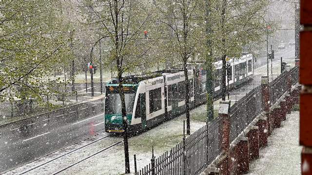 В ряде немецких городов 7 мая выпал густой мокрый снег. Метеорологическую службу такая погода откровенно удивила. Синоптики говорят-ни снега, ни дождя не ждали.